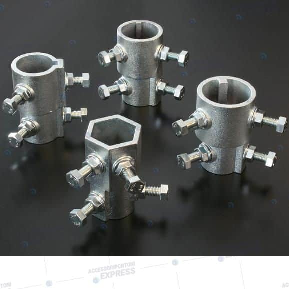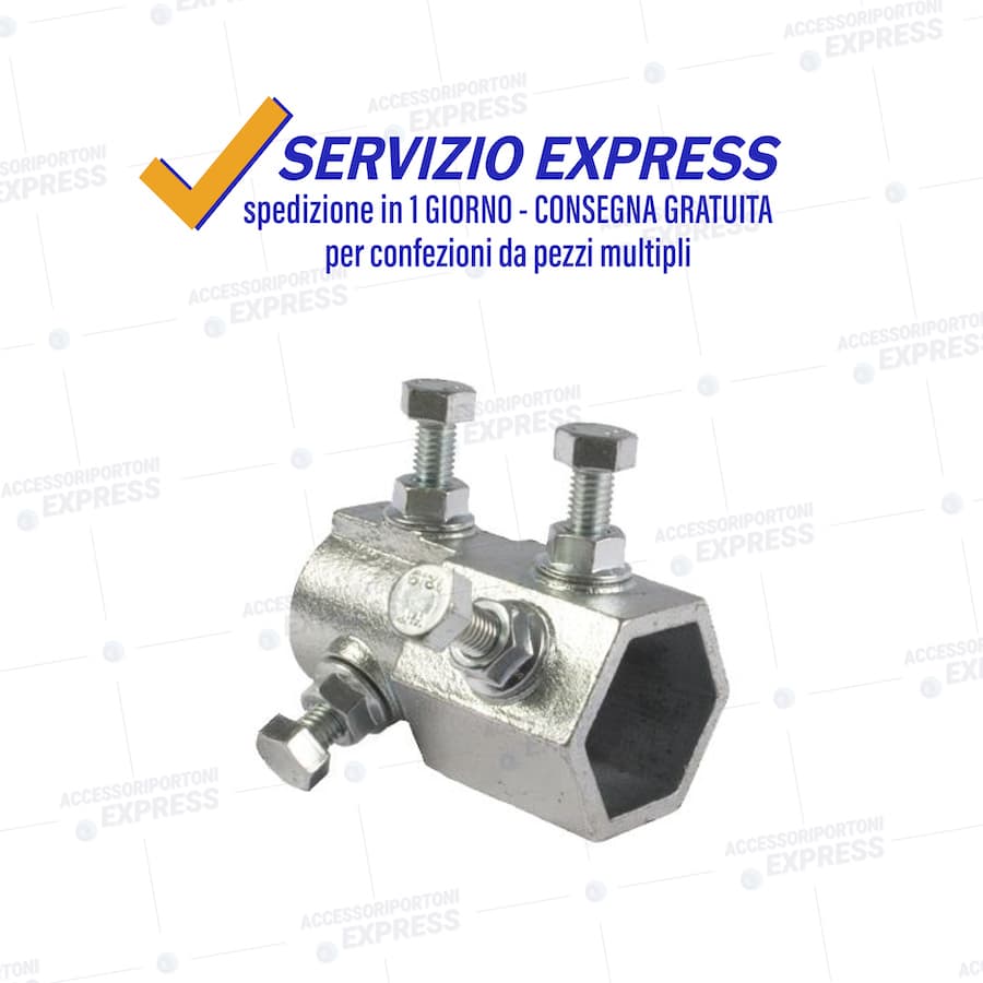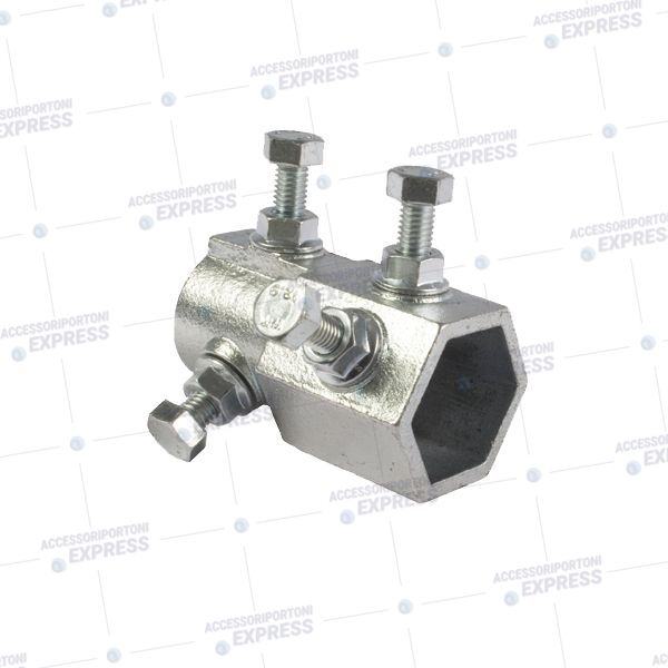 Descrizione tecnica | Per collegare un albero da 1 pollice ad un albero esagonale da 32 mm (installazione con operatore elettrico). Acciaio fuso, successivamente placcato (zincato). Dotato di bulloni/dadi M8 (chiave 13mm). Coppia massima bulloni 23 Nm. |