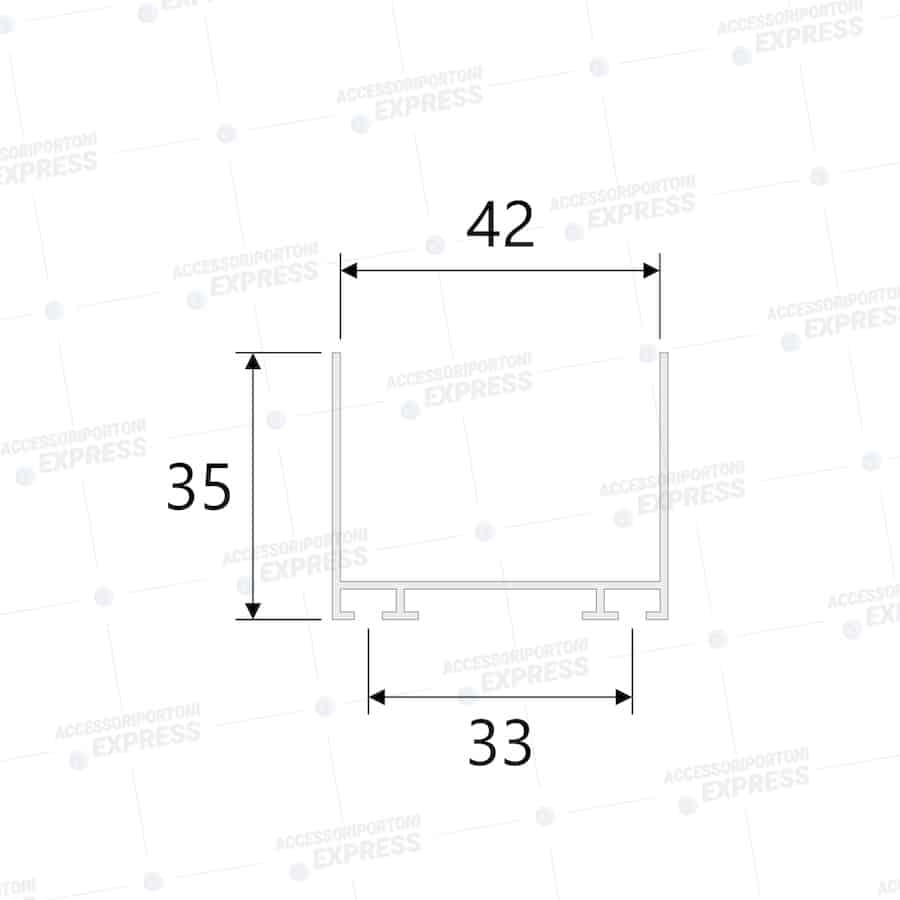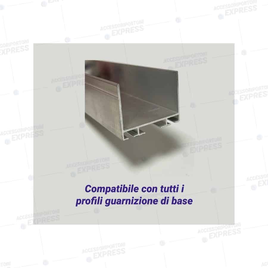 Profilo in alluminio porta-guarnizione per pannello di base e superiore colore argento